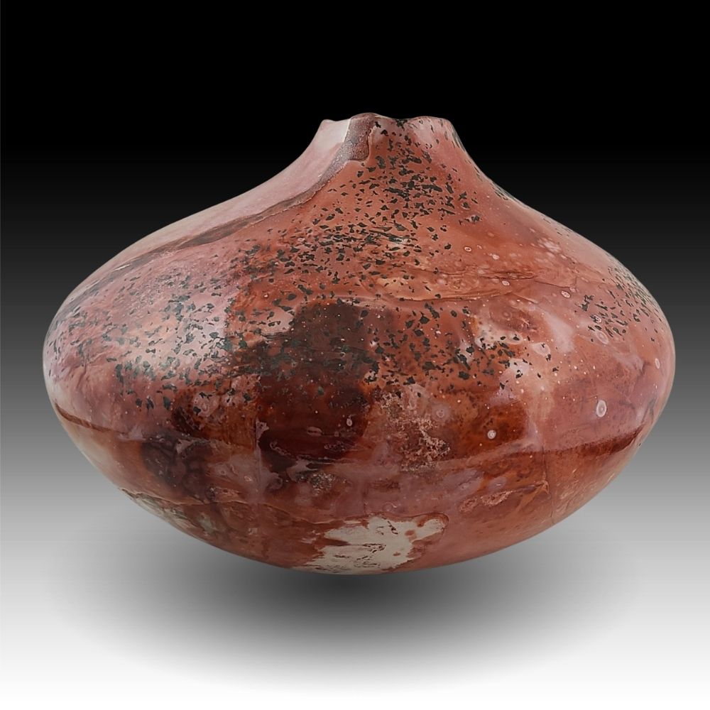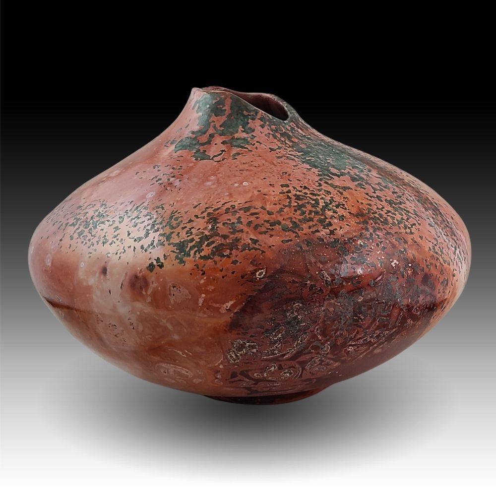 The work is then removed from the kiln after cooling to <200ᵒF, gently washed, dried and vigorously burnished with a combination of hard wax and acrylic to develop the smooth surface and glow.