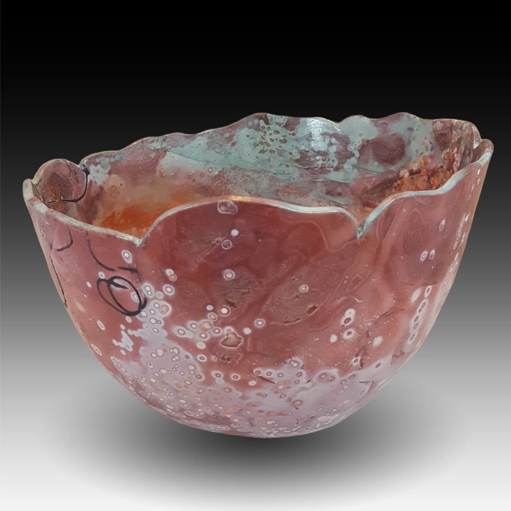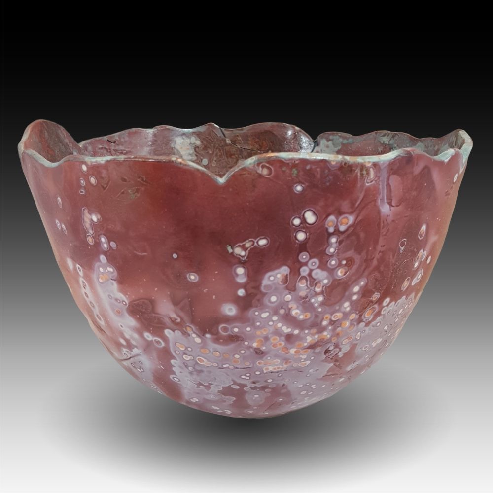 I’m working on developing a broader color pallet – this one includes verde copper accents that brought to mind the sea foam on the coast of the Big Island in Hawaii, where Kilauea poured her lava into the sea.