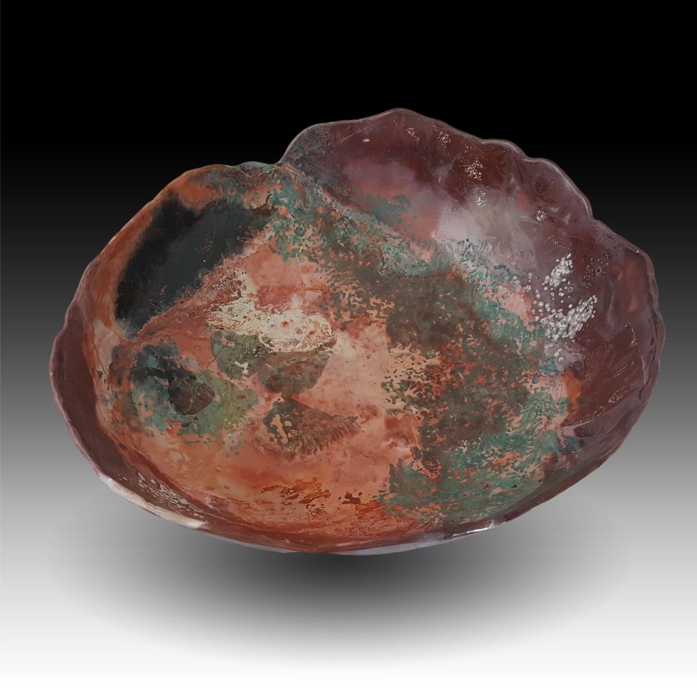 On the Eddyline is a place where kayakers get an adrenaline rush and fishermen anticipate a good catch. It is the interface between a calm, deep pool and a roiling, turbulent current. We experience eddylines in our lives so often! Thinking we will be at rest in a calm pool, we are suddenly swept up in some disaster and taken where we do not want to go!  But the serenity of faith – represented by the bowl in which all this activity takes place, reassures us that all will be well eventually.