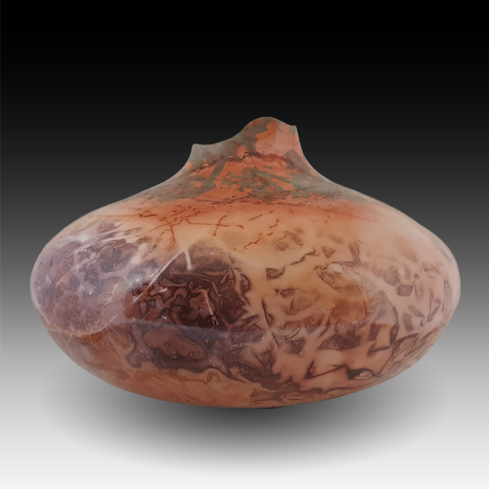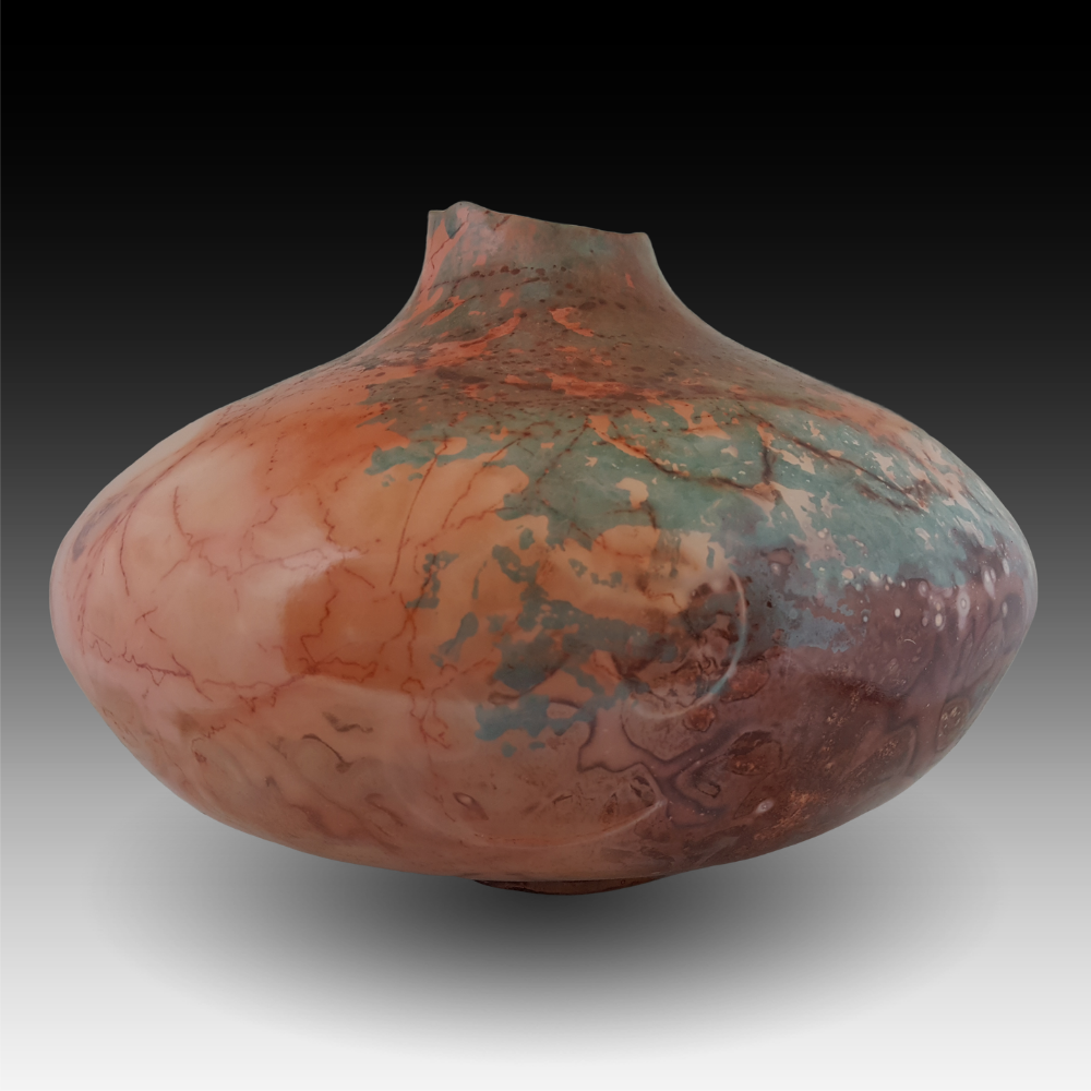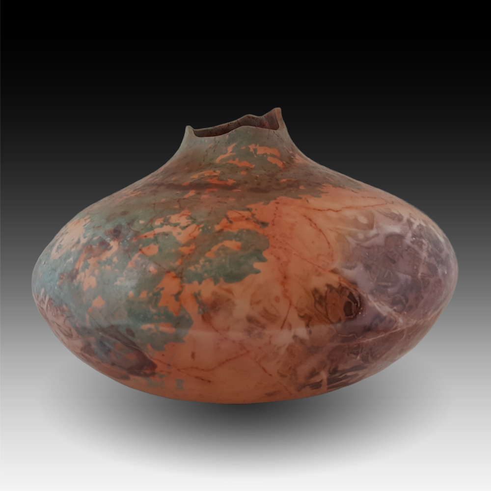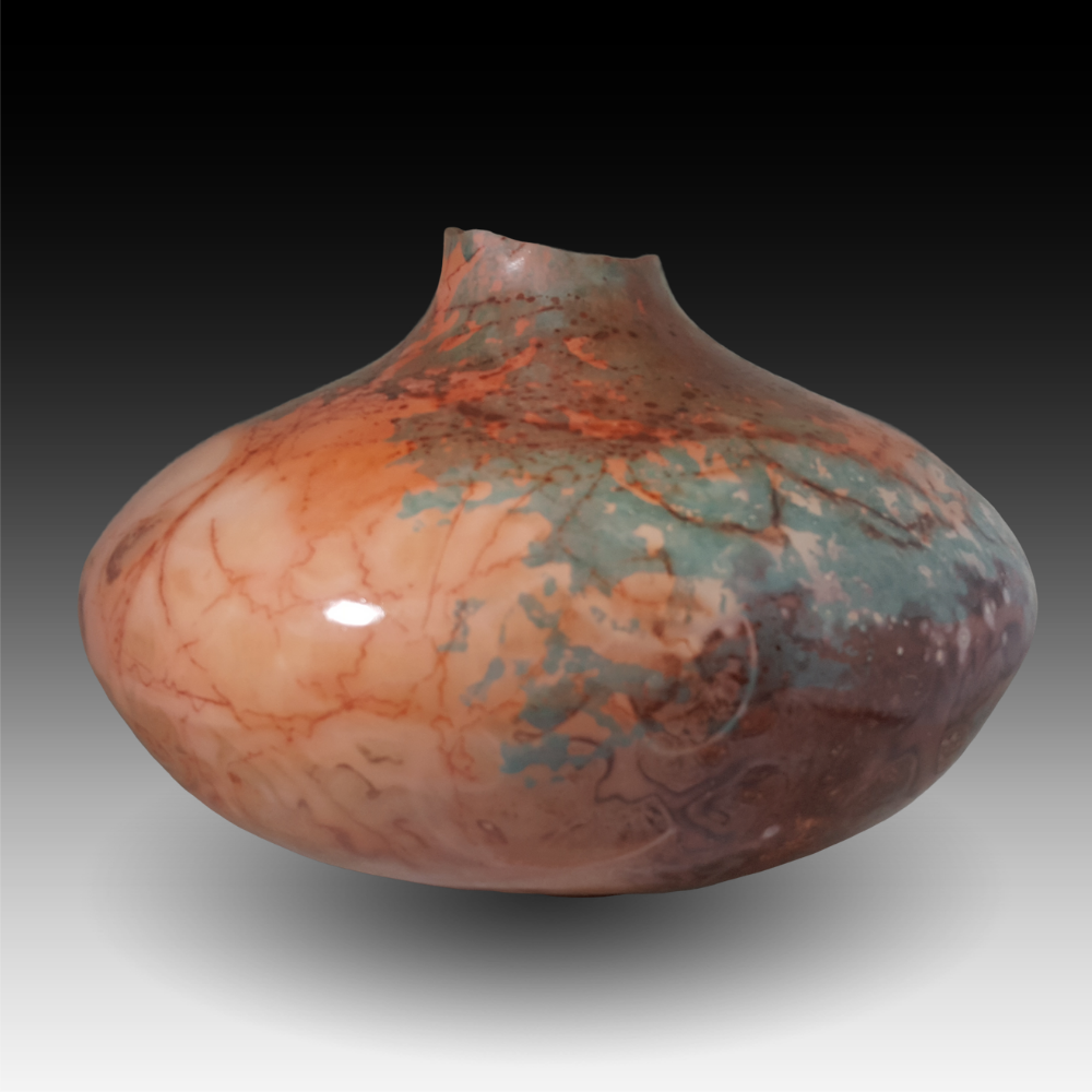 “Somewhere in Marble Canyon” reminds me of a location John Wesley Powell must have floated by during his heroic trip to chart the course of the Colorado River. Being something of an extemporaneous geologist, Powell knew there was really no marble in the canyon, but at the moment he passed the spot that gave the canyon its name, the sun was at just the right angle to give the canyon wall the shining glow of marble. Part of the fascination of being a ceramic artist, at least for me, is I can use heat to return soft clay to its earlier state – hard rock. The Southwest is a charmed place for me. Most of the inspiration for my colors and forms originates here.