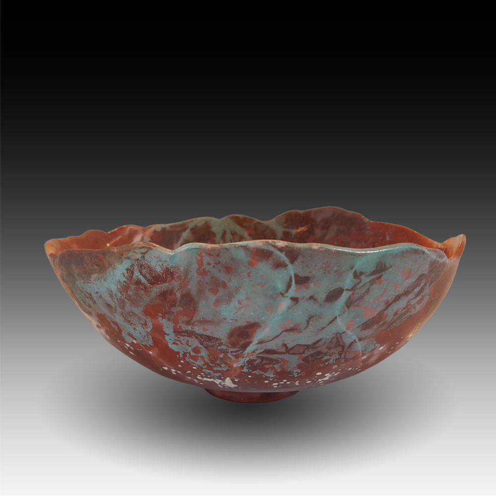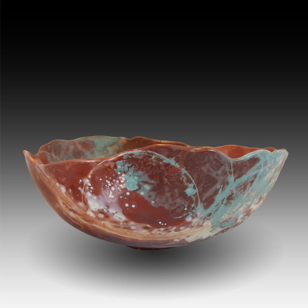 St. Elmo’s Fire Saggar-Fired, Sold Description “St. Elmo’s Fire” is an atmospheric phenomenon that creates a bright blue glow above a peak during an electrical storm. This piece named itself! Dimensions 9.5″w x 4″h Price $225 Location SOLD