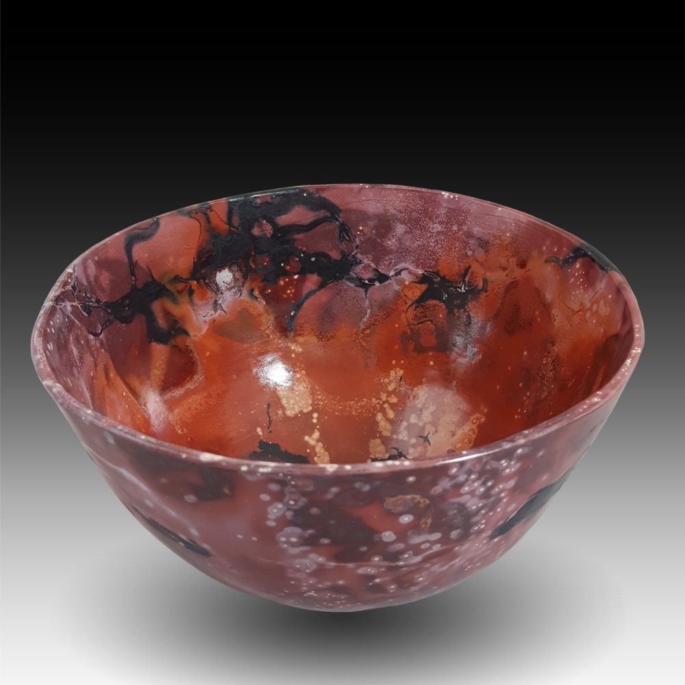 I thought this bowl was going to be a test piece. Well, in the final analysis, EVERY thing I produce is some kind of test. How the work survives the test determines its worth. Similar to ourselves. The quote used for its title occurs in two places, Joel 2:31 and Acts 2:20, both referring to the fiery last day of judgment. This bowl certainly looks like it holds the fire of that day.